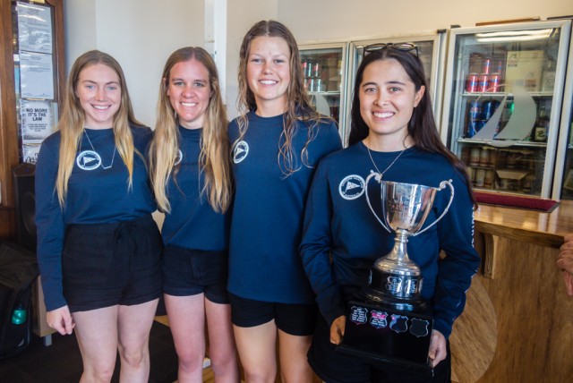 Third place went to the MYC Women’s Representative team, skippered by the MYC Women’s Skills Development program mentor, Danielle Kennedy with her crew, Kerry Lorimer, and Abbie Glenister and Kristie Hatch who shared bow duties on consecutive days.