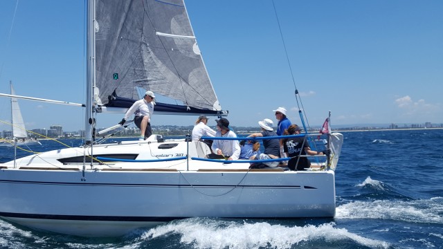 - Interclub Challenge Series, 29Oct17, start boat team. Credit Gary Schulz.